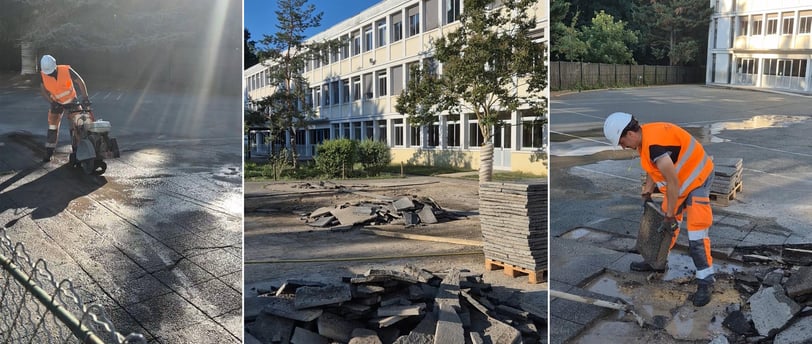 Gros plan sur les travaux de végétalisation des cours de l’école Honoré d’Estienne d’Orves.
